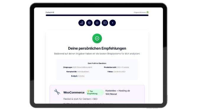 Mit wenigen Klicks erhalten Sie individuelle Vorschläge für Geschäftsmodelle – abgestimmt auf Ihre Interessen, Ihr Startkapital und Ihre Fähigkeiten.